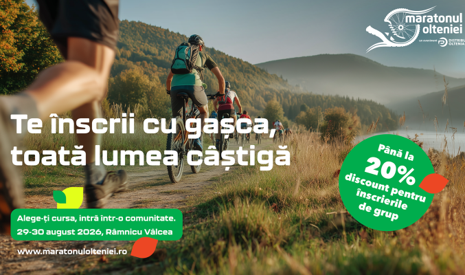 Maratonul Olteniei 2026: s-au deschis înscrierile cu reduceri de până la 20%. Cursa Hyathlon Sprint – o premieră în RomâniaSe deschid înscrierile pentru Maratonul Olteniei 2026, ediția a 14-a a uneia dintre cele mai cunoscute competiții sportive în natură din România, orga...