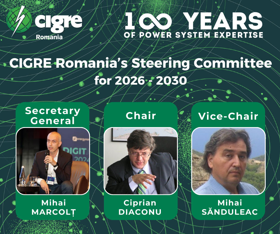 Adunarea Generală a membrilor CIGRE Romania pe anul 2026, întrunită în data de 12.02.2026, a votat un nou mandat (2026 – 2030) al Comitetului Director format din dr. ing. Ciprian Diaconu în calitate de Președinte, ing. Mihai Marcolț în calitate de Secretar General și prof. dr. ing. Mihai Sănduleac în calitate de Vicepreședinte.