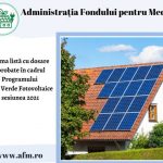 Administraţia Fondului pentru Mediu – AFM a publicat prima listă cu dosarele aprobate în Programul Casa Verde Fotovoltaice, sesiunea 2021. Până la această dată au fost aprobate 1.041 cereri de finanțare.