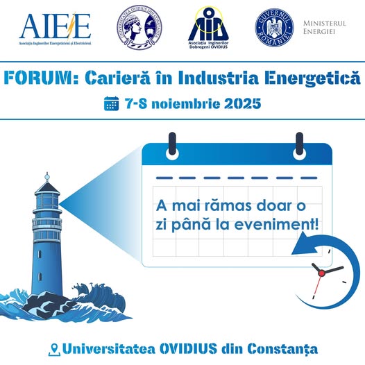 În perioada 7-8 noiembrie 2025, Asociația Inginerilor Energeticieni și Electricieni împreună cu Universitatea Ovidius Constanța și AIDO – Asociația Inginerilor Dobrogeni Ovidius, organizează o nouă ediție a evenimentului Forum: Carieră în Industria Energetică 2025, la Constanța. Ministerul Energiei este Partener Strategic al evenimentului.