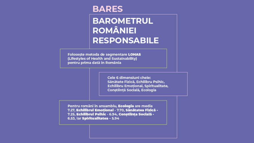 Studiul introduce pentru prima dată în peisajul românesc metodologia LOHAS, Lifestyles of Health and Sustainability, pentru a oferi o segmentare a românilor pe criterii de stil de viață și responsabilitate socială, explorând 6 dimensiuni cheie. Trei dintre acestea – Sănătate Fizică, Echilibru Psihic, Echilibru Emoțional – sunt centrate pe atitudinea individului față de propria viață și stare de bine. Celelalte trei – Spiritualitate, Conștiință Socială, Ecologie – se concentrează asupra atitudinii față de mediu și comunitate.