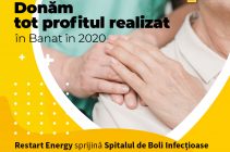 Restart Energy, furnizor român de energie electrica si gaze naturale pentru societati comerciale si locuinte, este printre primele companii din Banat care au răspuns imediat apelului de a sprijini activitatea Spitalului de Boli Infectioase “Victor Babes” din Timisoara in lupta impotriva epidemiei cu virusul Covid-19. “Am hotarat sa donam tot profitul realizat in Banat, de … Continuă să citești Restart Energy, furnizor de energie și gaze naturale din Timișoara, donează tot profitul realizat în Banat pentru lupta împotriva epidemiei COVID-19