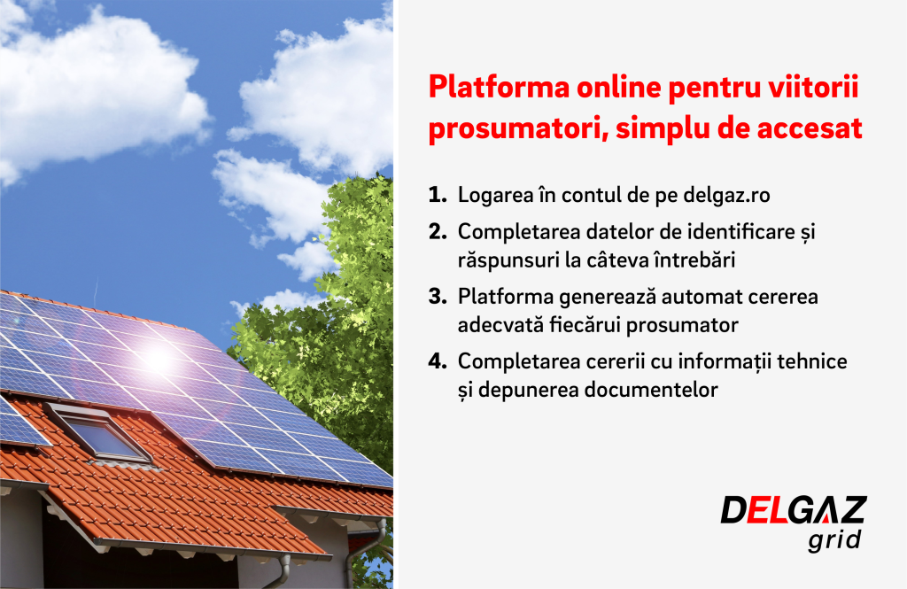 Delgaz Grid pune la dispoziția viitorilor prosumatori o platformă dedicată, pe site-ul delgaz.ro, unde aceștia pot depune simplu și rapid documentația necesară pentru racordarea la rețea și obținerea statutului de producător de electricitate din surse regenerabile.