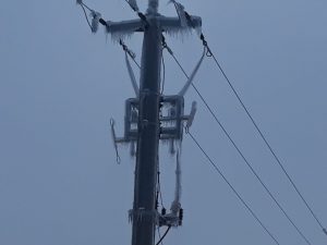 – Pe aria judeţelor Călăraşi şi Ialomiţa, 10 linii de înaltă tensiune, din cauza galopajului şi a depunerilor masive de chiciură pe conductori, au înregistrat defecţiuni prin ruperea conductorilor şi a unor componente de reţea, fiind afectată alimentarea cu energie electrică a 4 staţii de transformare;