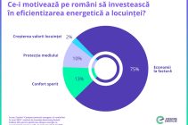 Economiile la factură reprezintă principala motivație pentru 75% dintre români în ceea ce privește măsurile de eficiență energetică, în timp ce confortul sporit este menționat de 13% dintre respondenți, iar aproape 10% își manifestă preocuparea pentru mediu și spun că o locuință eficientă energetic contribuie la reducerea poluării, relevă o cercetare sociologică realizată pentru platforma … Continuă să citești Studiu: Reducerea facturilor este principala motivație pentru 75% dintre români în ceea ce privește măsurile de eficiență energetică
