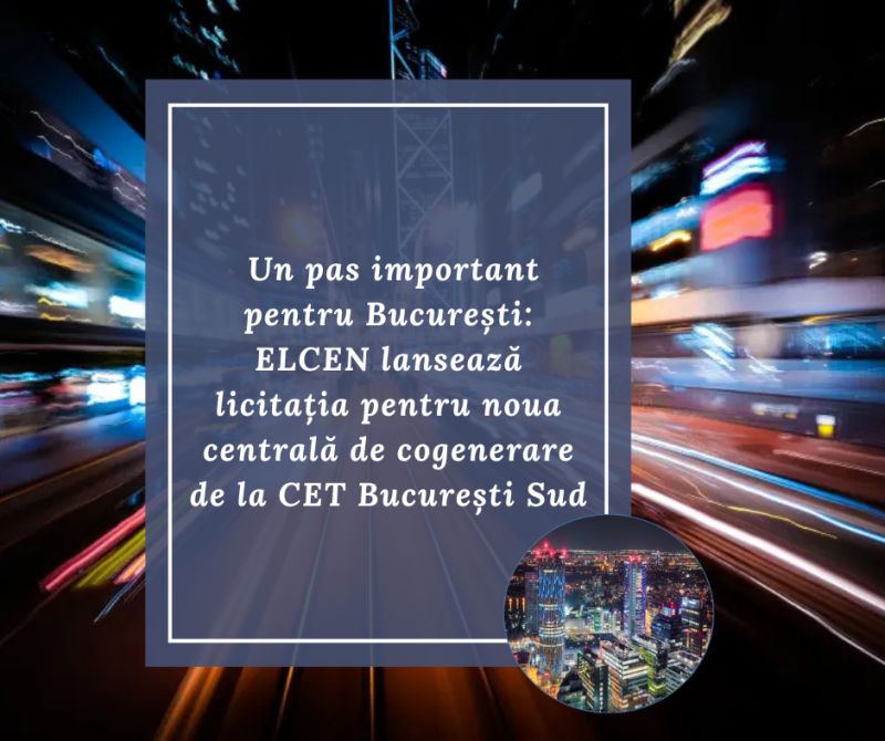 ELCEN a lansat oficial licitația pentru noua centrală de cogenerare de la CET București Sud — un proiect esențial pentru ca bucureștenii să aibă, în anii următori, căldură și apă caldă produse mai eficient și cu emisii reduse.