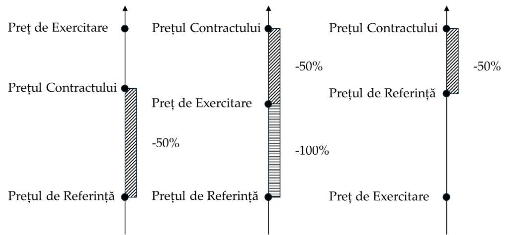 Nu există reguli similare pentru cazul în care Prețul Contractului este mai mic decât Prețul de Referință ceea ce înseamnă că producătorul suportă integral pierderile într-un astfel de caz. Prin urmare, un producător ar avea interes să intre într-un astfel de contract bilateral doar dacă Prețul Contractului este mai mare decât Prețul de Exercitare.