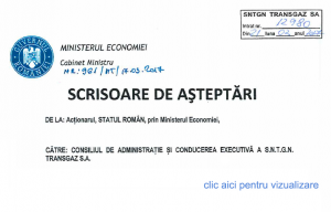 Ministerul Economiei, în calitate de acționar, a elaborat și transmis o Scrisoare care stabilește așteptările sale privind performanțele S.N.T.G.N. Transgaz companiei și ale conducerii acesteia, pentru o perioadă de 4 ani, respectiv 2017-2021.