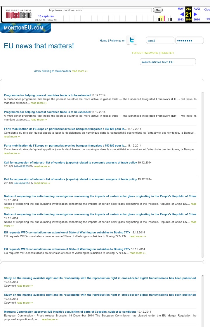 În timp ce ministrul susține că “platforma a fost un model de analiză întâlnit în mediul economic de la Bruxelles, unde astfel de soluții digitale sunt utile pentru a putea identifica trendurile viitoare ale politicilor europene și pentru predicții legate de oportunități de business pentru actorii implicați în acest domeniu”, jurnaliștii au descoperit, accesând arhiva internetului, o singură pagină în 2014, ceva care se prezintă cel mult ca un site de știri la nivel european. Conform urlrom.com, site-ul se afla pe locul 50.763 in România, cu 14 vizite zilnice , având o valoare estimată de 296 lei la nivelul anului 2015.