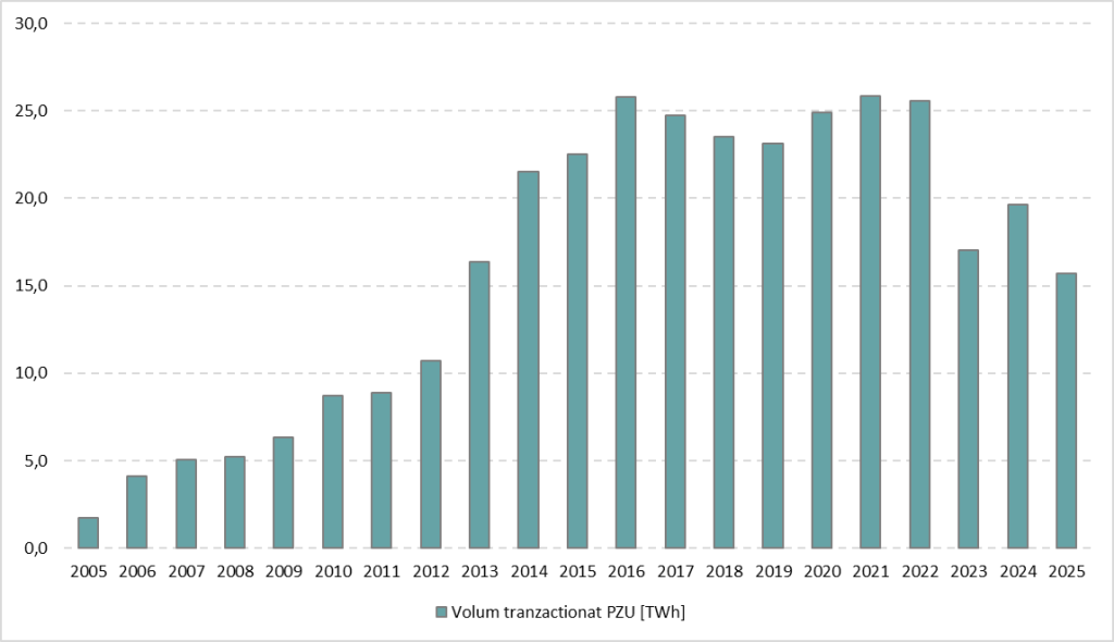 Volume tranzacționate pe PZU: 15,7 TWh în 2025