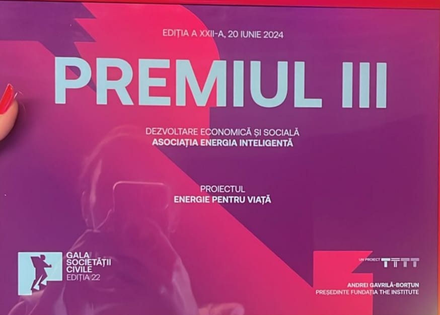 Proiectul „Energie pentru Viața” este câștigătorul locului III la Ediția XXII a Galei Societății Civile 2024, Categoria Dezvoltare Economică și Socială.