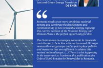 „România trebuie să stabilească obiective naționale mai ambițioase și să accelereze dezvoltarea și punerea în funcțiune a unor noi capacități de energie din surse regenerabile. Actuala revizuire a Planurilor naționale privind energia și clima este ocazia perfectă pentru asta. Comisia încurajează România să își revizuiască contribuția pentru a fi în conformitate cu obiectivul sporit al … Continuă să citești RWEA și RPIA lansează Codul de Bune practici pentru energia regenerabilă din România, pe 21 septembrie