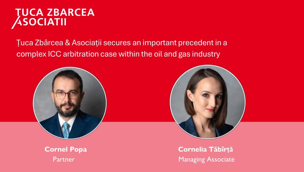Țuca Zbârcea & Asociații a reprezentat cu succes un mare producător independent de petrol și gaze din România într-un arbitraj ICC cu sediul la Paris, rezultat dintr-un acord de operare în comun a unor blocuri petroliere din România.