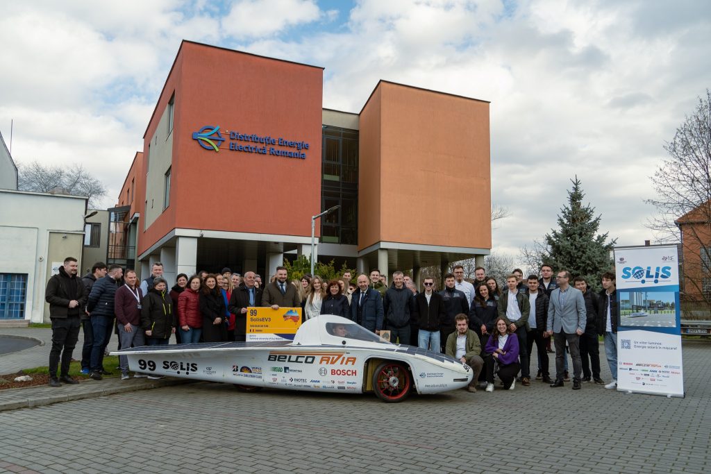 Vehiculul solar SOLIS, care a parcurs anul trecut, la Bridgestone Solar Challenge, 1200 km, exclusiv pe energie solară, prin deșertul Australian, este expus în curtea sediului Distribuție Energie Electrică Romania din Cluj.
